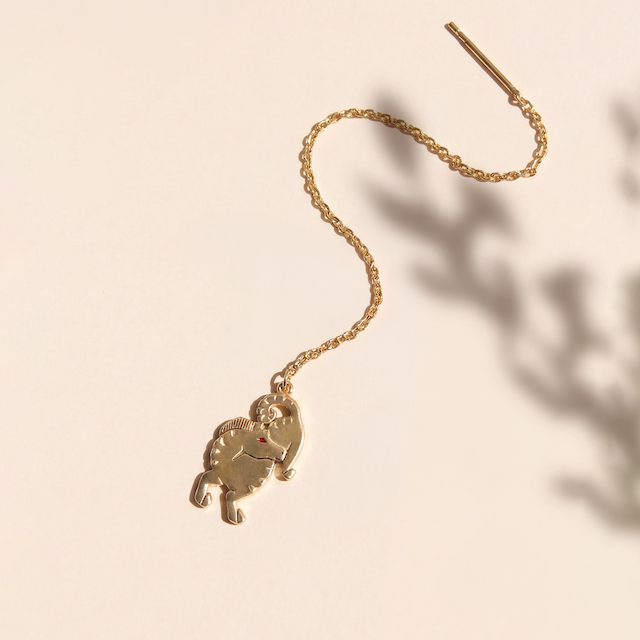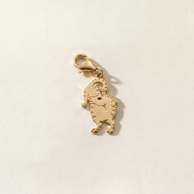 Meltem Özertem koleksiyonu için özel olarak tasarlanan At sembolü, 14 ayar altındır. El işçiliği ile üretildiği için her ürün kendine özgü küçük farklılıklar taşıyabilir. Klipsi ile beraber 2,5 cm'dir.